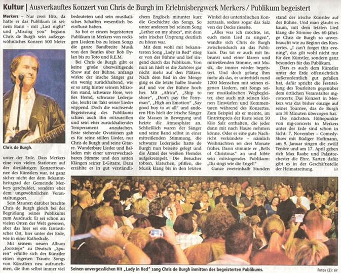Chris de Burgh "Footsteps Tour" 2009 im Erlebnisbergwerk Merkers