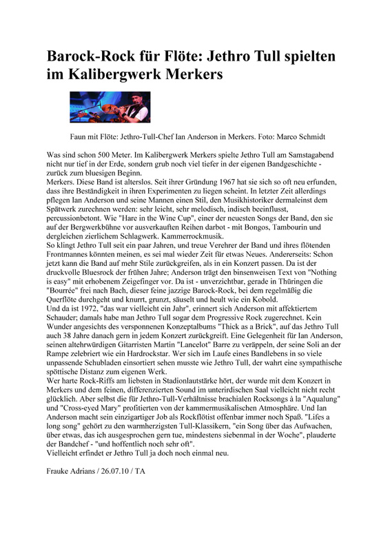 Jethro Tull 2010 im Erlebnisbergwerk Merkers