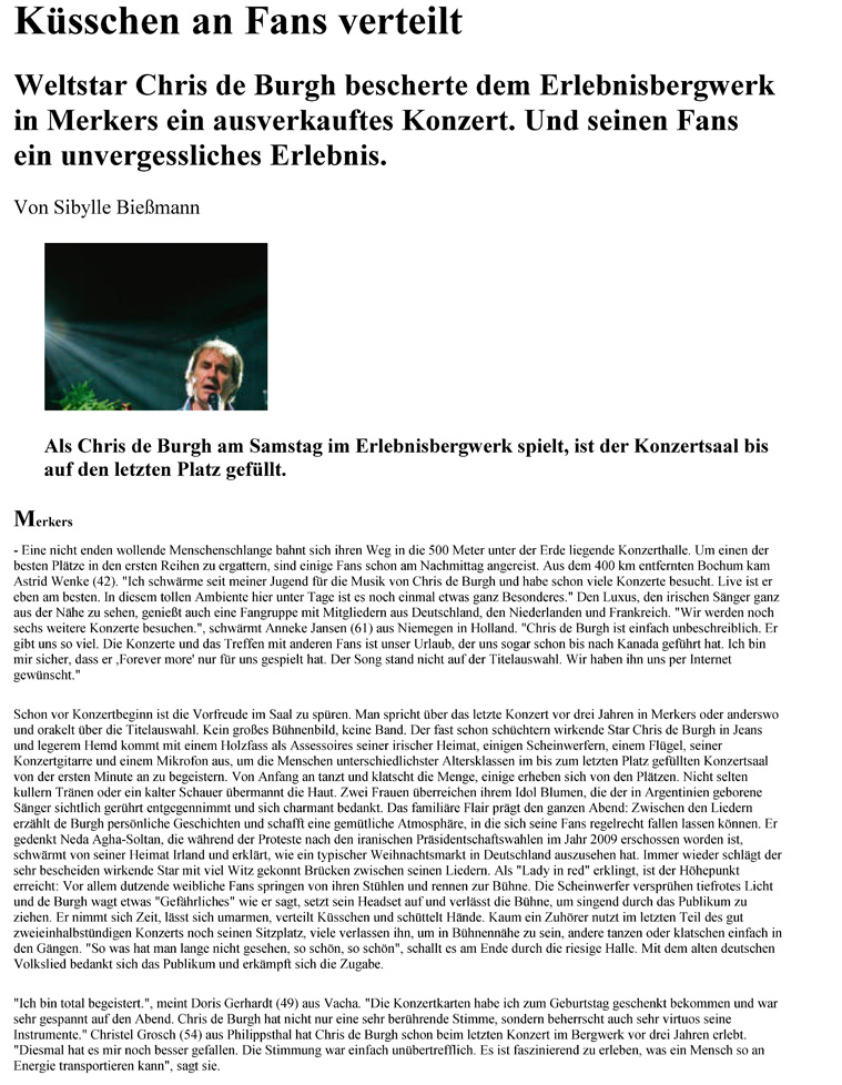 Pressebericht Chris de Burgh Sommertour 2012