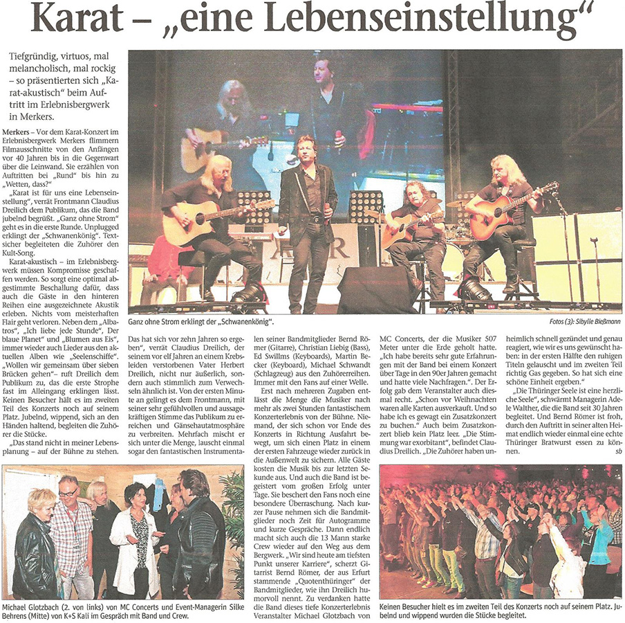 Pressebericht Karat akustisch 2015 im EBW Merkers 01