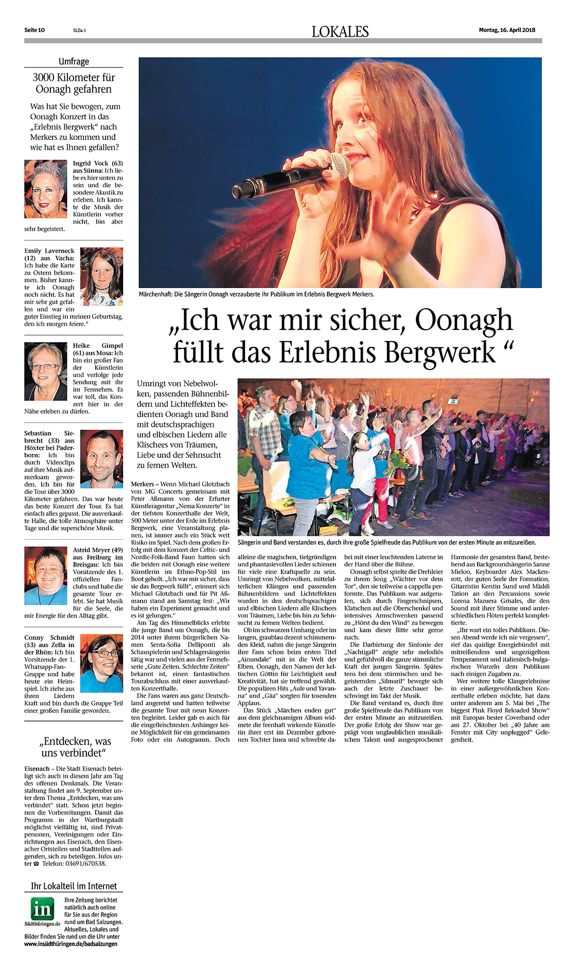 Pressebericht Oonagh 2018 im EBW Merkers
